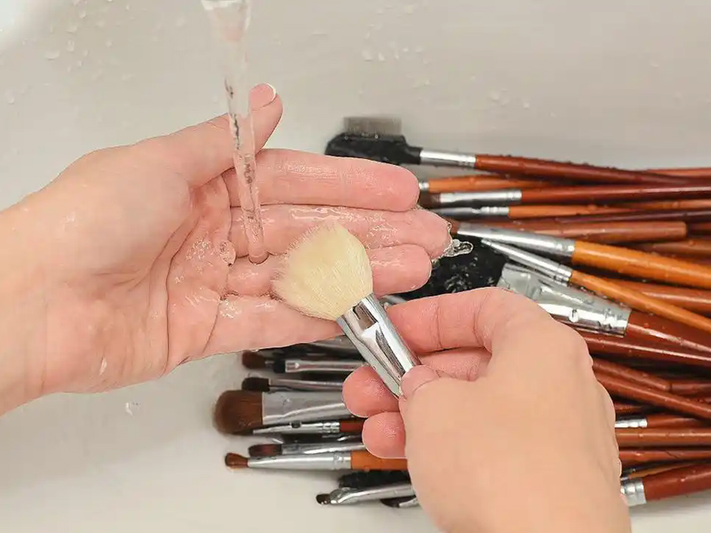 És recomanable netejar el pinzell de maquillatge una o dues vegades per setmana, regularment acomiadar -se dels danys causats per la contaminació secundària del raspall de maquillatge a la pell